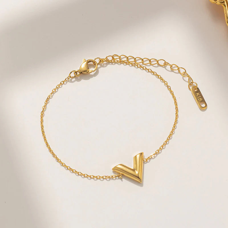 Sharp, sleek, and effortlessly modern. The Vibe V-Wrap Bracelet features a bold V-shaped wraparound design with a smooth, polished finish—crafted to elevate your style with minimal effort.